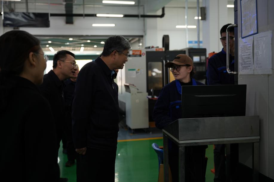 调研组首先来到学院智能制造实训基地,与正在上课的学生亲切交流,详细询问了学生的学习情况和实训进展。随后,调研组走进工业机器人实训课堂,实地观摩了教学情况。