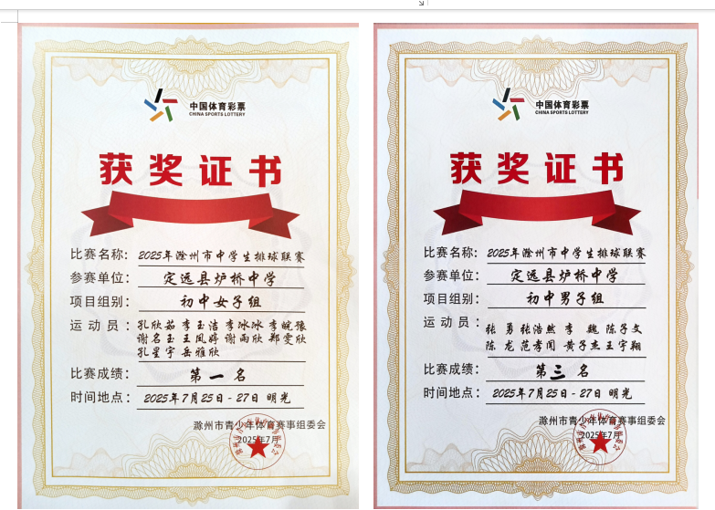 经过3日的激烈角逐, 最终评出男女各组一等奖1名,二等奖1名,三等奖2名,其中,炉桥中学排球队凭借出色的发挥荣获女子组第一名,男子组第三名。比赛结束后,市领导为获奖团队进行了颁奖,比赛在热烈的掌声中圆满落幕。本次优异成绩的取得,离不开学校领导的高度重视和大力支持,离不开教练团队的悉心指导和辛勤付出,更离不开队员们日复一日的刻苦训练。